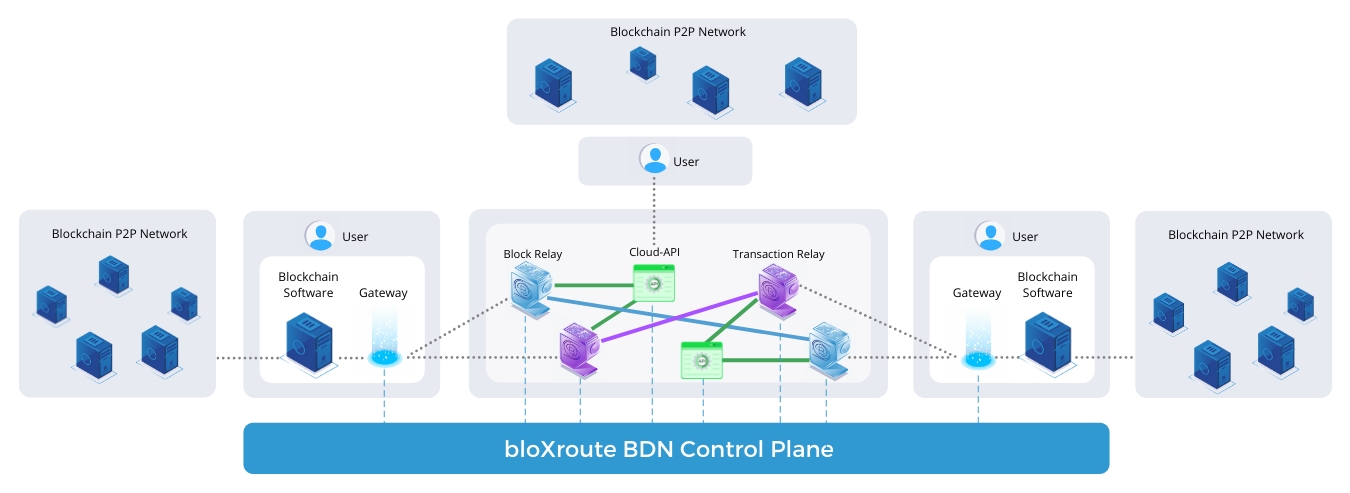 The bloXroute Gateway is an application that connects your blockchain full node to the bloXroute BDN. Using the Gateway, the BDN is designed to propagate blocks and transactions to your full node faster than the traditional peer-to-peer blockchain network. The Gateway software is written in a combination of Python and C++. It may be installed by downloading a Docker Container with the Gateway already installed, or via installation using pip. While the Gateway software communicates using the blockchain protocols, it does not maintain the blockchain state. Accordingly, the Gateway will connect to a remote blockchain node maintained by bloXroute to proxy messages when requested by the user’s blockchain node.